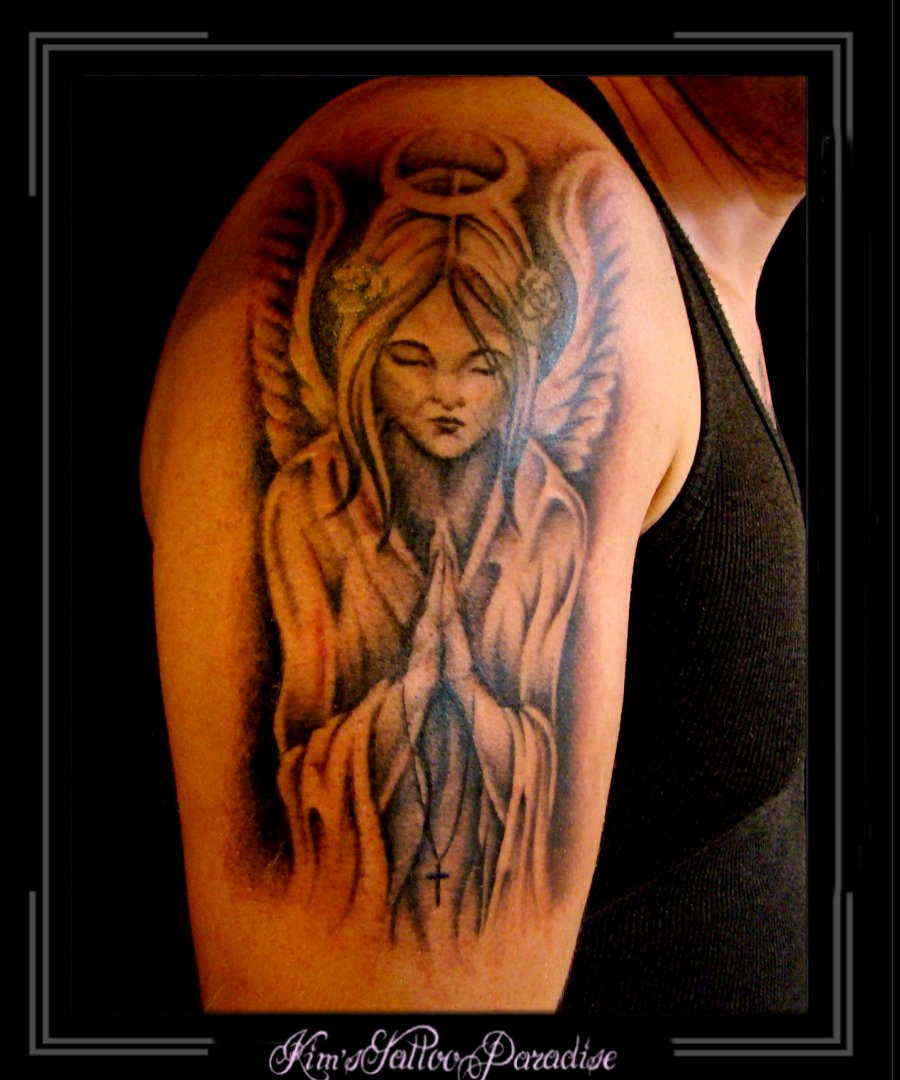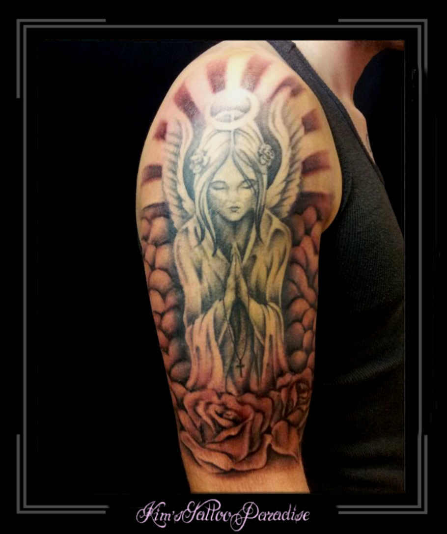 engel met roos 14 juli 2014 Geef een reactie Tattoo angel, aura, bloemen, engel, flowers, roses, rozen, stralen