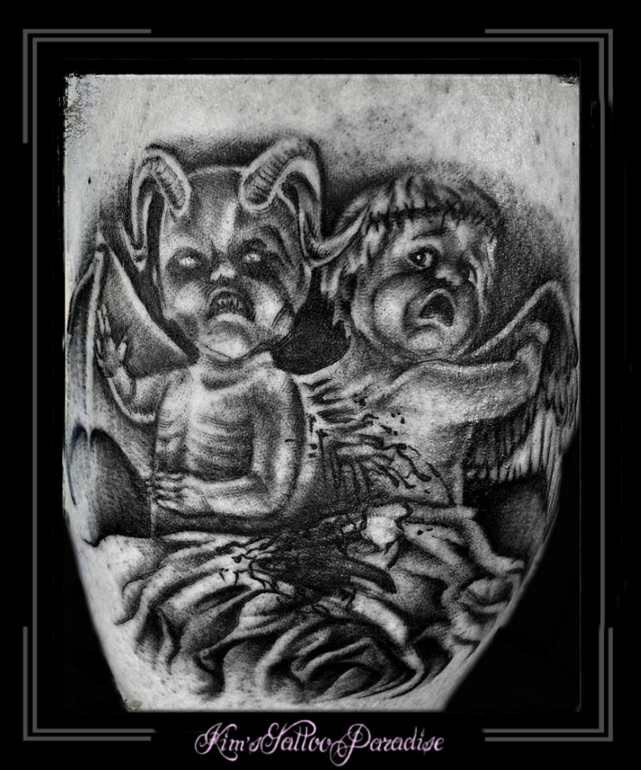 duivel en engel 18 februari 2015 Geef een reactie no images were found Tattoo angel, color, devil, duivel, engel, kleur, onderarm