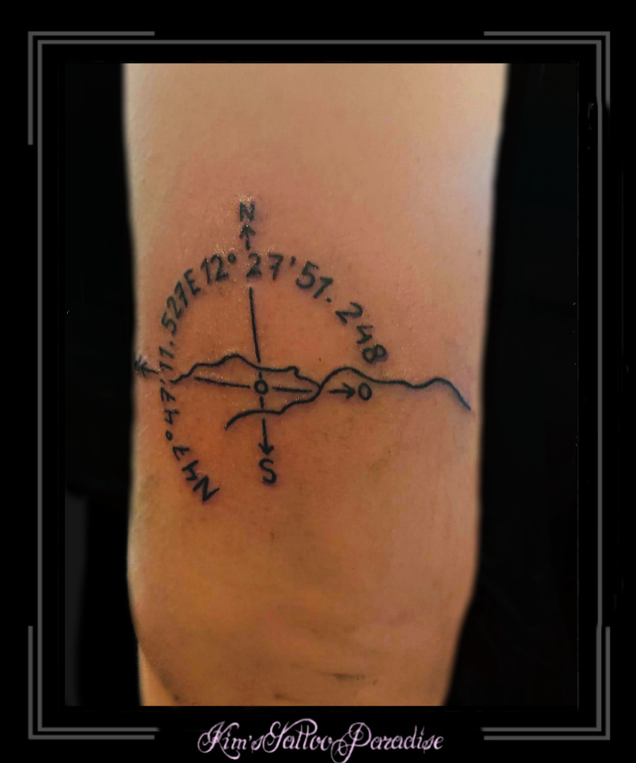Kompas en coördinaten 30 juli 2021 Geef een reactie Tattoo bergen, bovenarm, coordinaten, duitsland, globe, kompas, landkaart