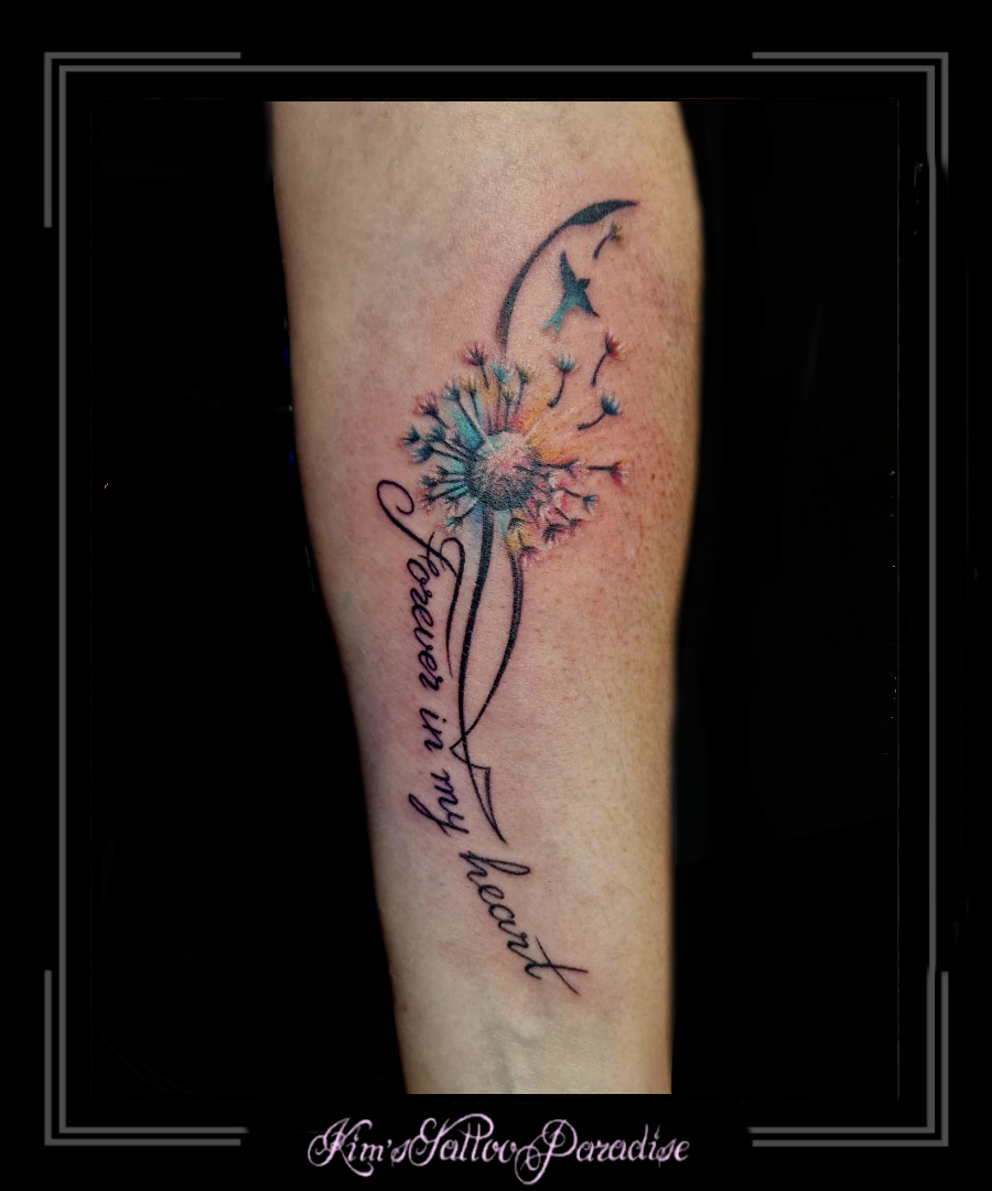 Paardenbloem, blaasbloem kleur 10 november 2023 Geef een reactie Tattoo blaasbloem, kleur, onderarm, paardenbloem, pluisjes, tekst, vogel