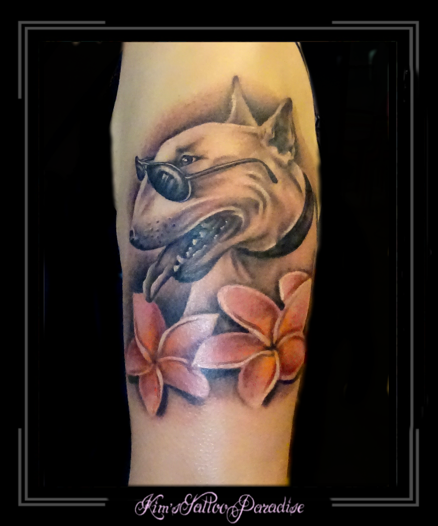 bullterrier met bril portret 28 januari 2016 Geef een reactie Tattoo arm, bril, bull, bullterrier, dier, hond, terrier