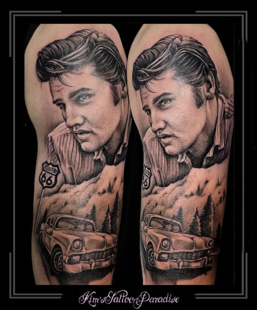 Elvis Presley 19 maart 2025 Geef een reactie Tattoo amerika, auto, elvis presley, icoon, route 66, zanger