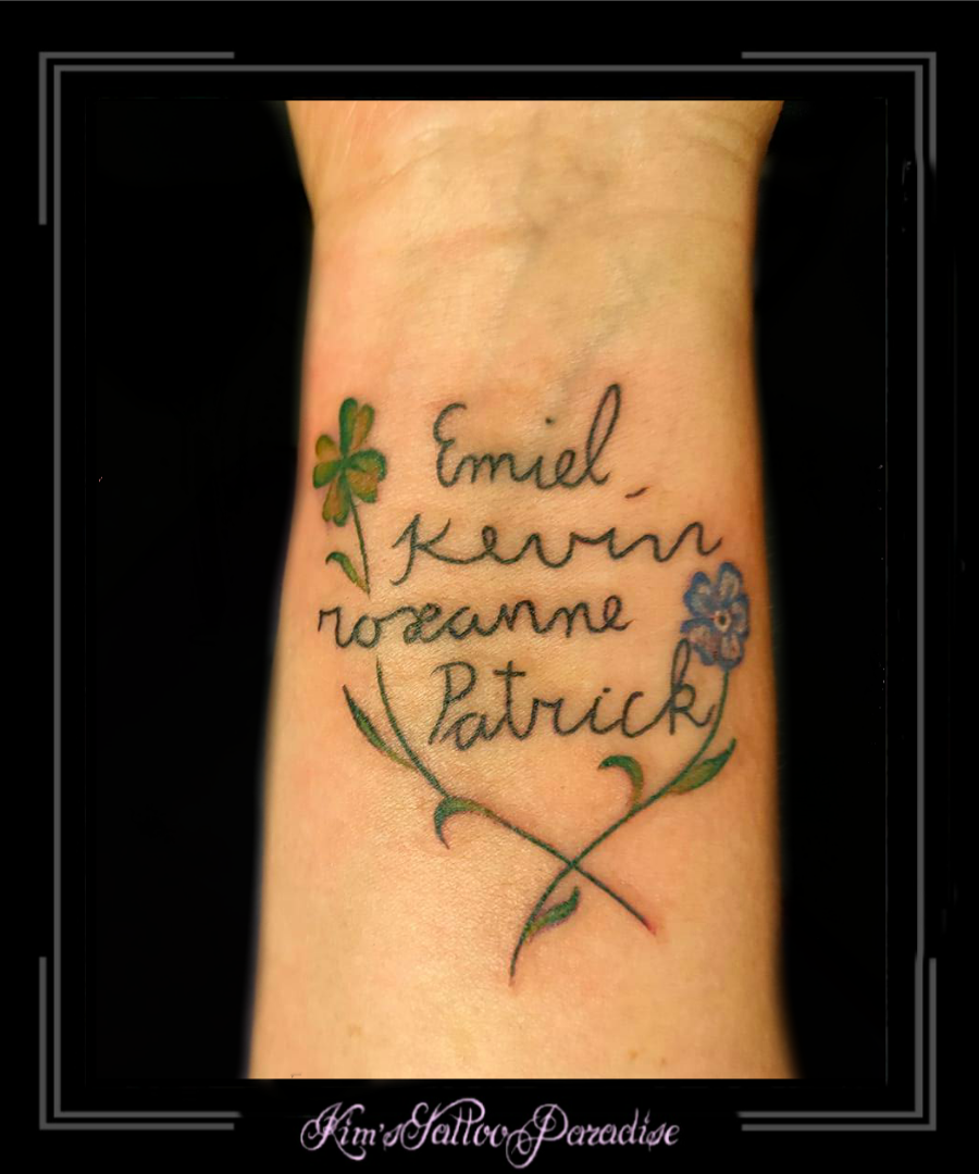 Namen in eigen handschrift 22 oktober 2021 Geef een reactie Tattoo eigen handschrift, klaver 4, namen, pols, vergeet me niet