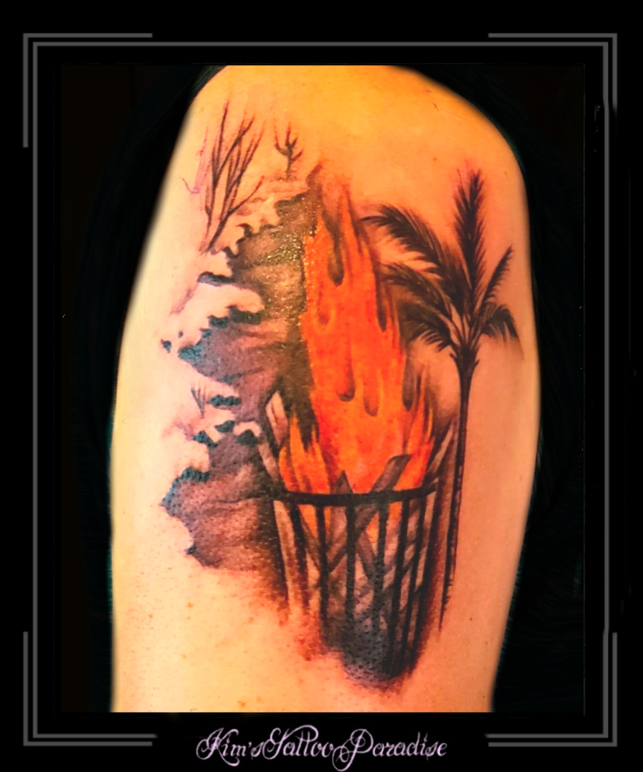 Vuurkorf en palmbomen 27 september 2021 Geef een reactie Tattoo bovenarm, frankrijk, oostenrijk, palmboom, vakantie, vuur, vuurkorf