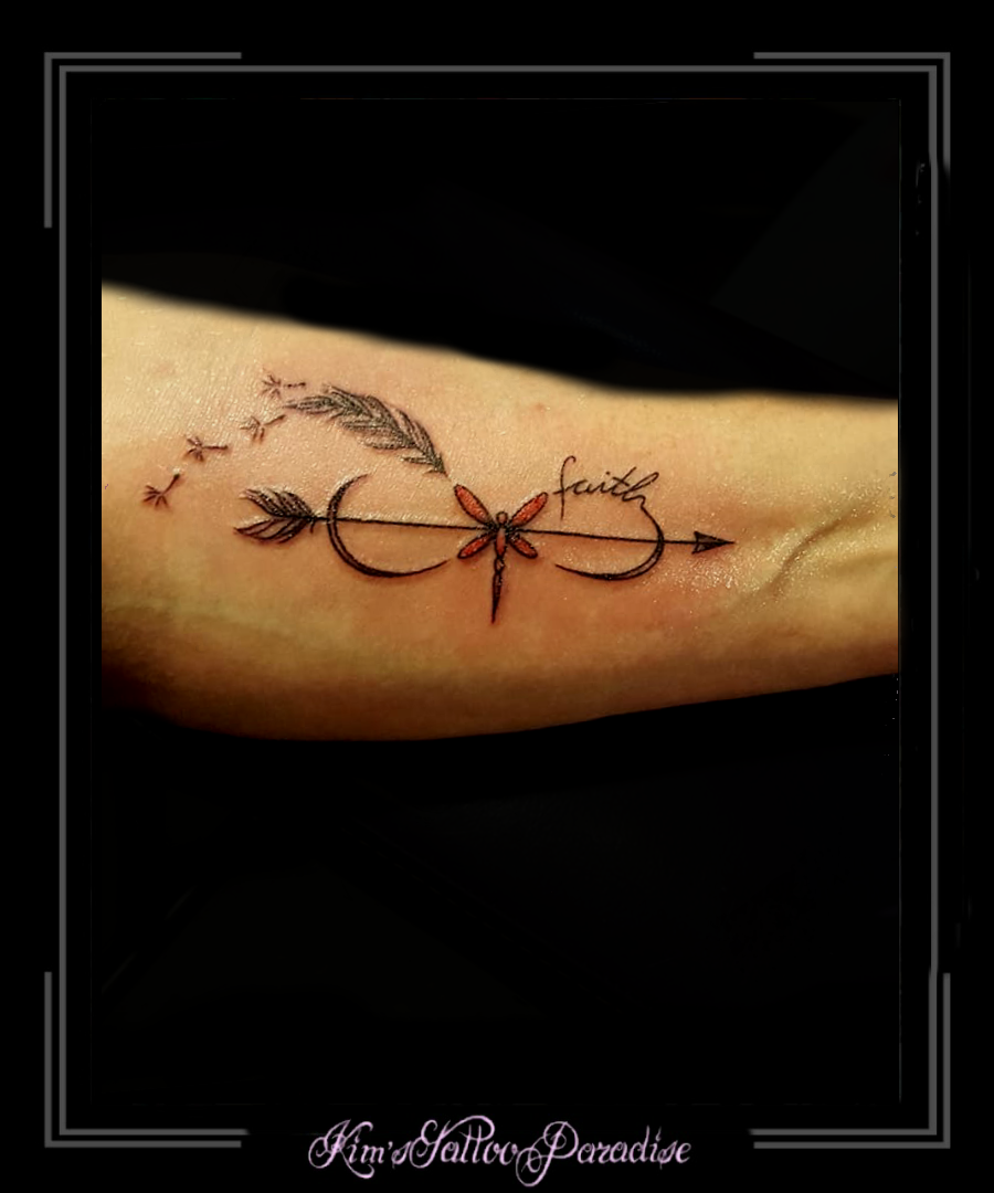 libelle,veer,veren,infinity,pluisjes,onderarm,tekst,pijl, 11 januari 2020 Geef een reactie Tattoo infinity, libelle, onderarm, pijl, pluisjes, tekst, veer, veren