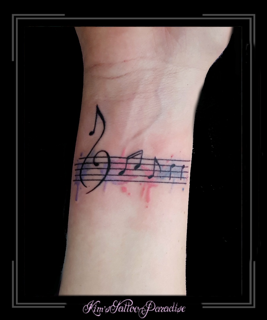 notenbalk 15 april 2016 Geef een reactie Tattoo muzieknoot, muzieknoten, notenbalk, pols, sleutel, trash, watercolor