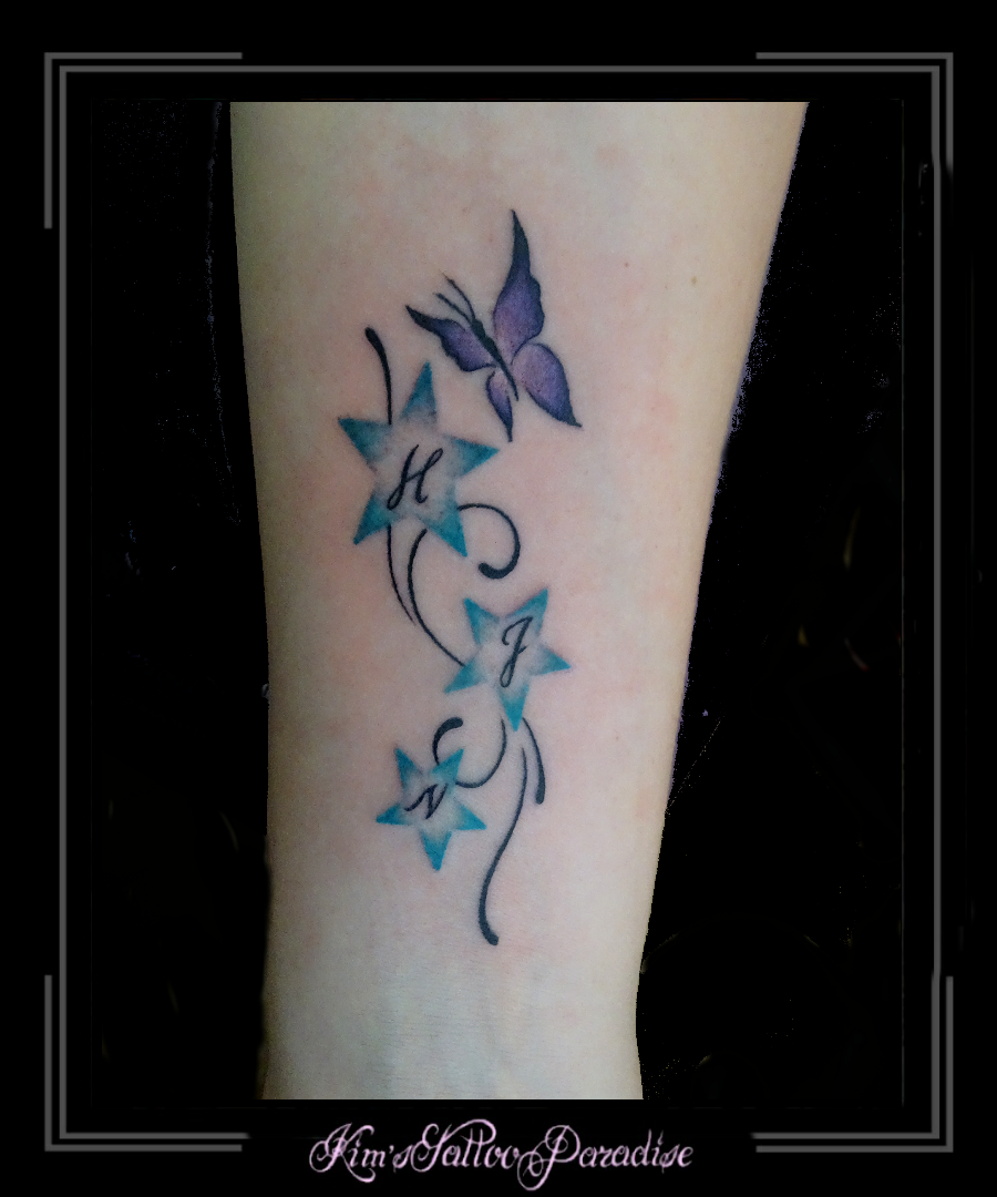 vlinder en sterren pols 30 juni 2016 Geef een reactie Tattoo initialen, letters, pols, sterren, vlinder
