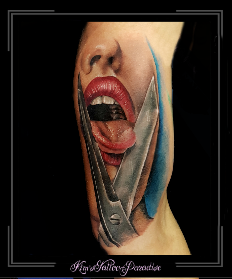 schaar tong neus vrouw bovenarm 21 september 2017 Geef een reactie Tattoo bovenarm, neus, portret, schaar, tong, vrouw
