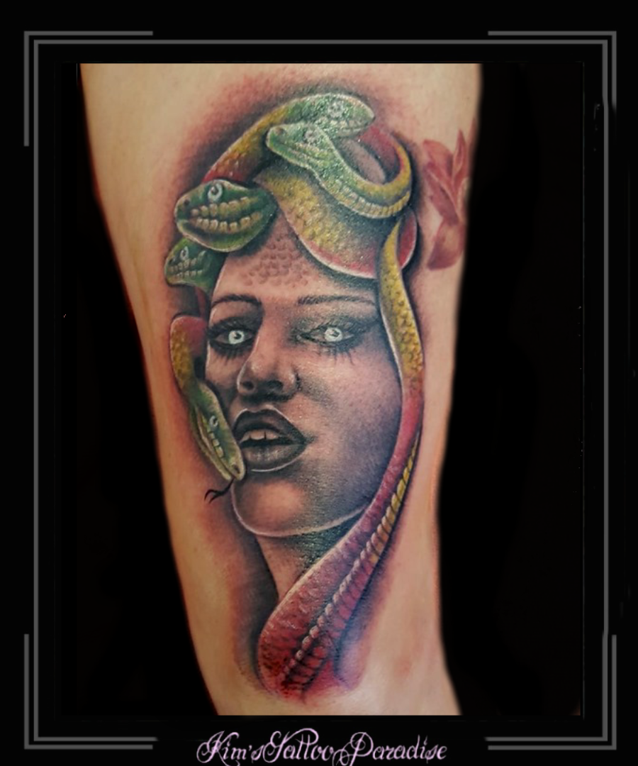 medusa ,phorcys,griekse mythologie,slangen,vrouw,portret,bovenbeen, 30 juni 2019 Geef een reactie Tattoo bovenbeen, griekse mythologie, medusa, phorcys, portret, slangen, vrouw
