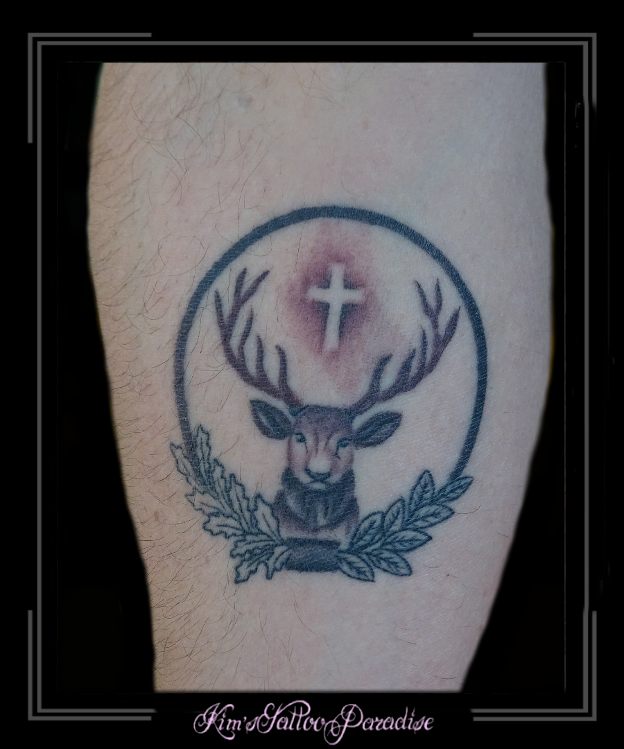 hert jagerslogo 27 maart 2016 Geef een reactie Tattoo dier, hert, hulst, jagers, kruis, logo, rondje, symbol, symbool, takken
