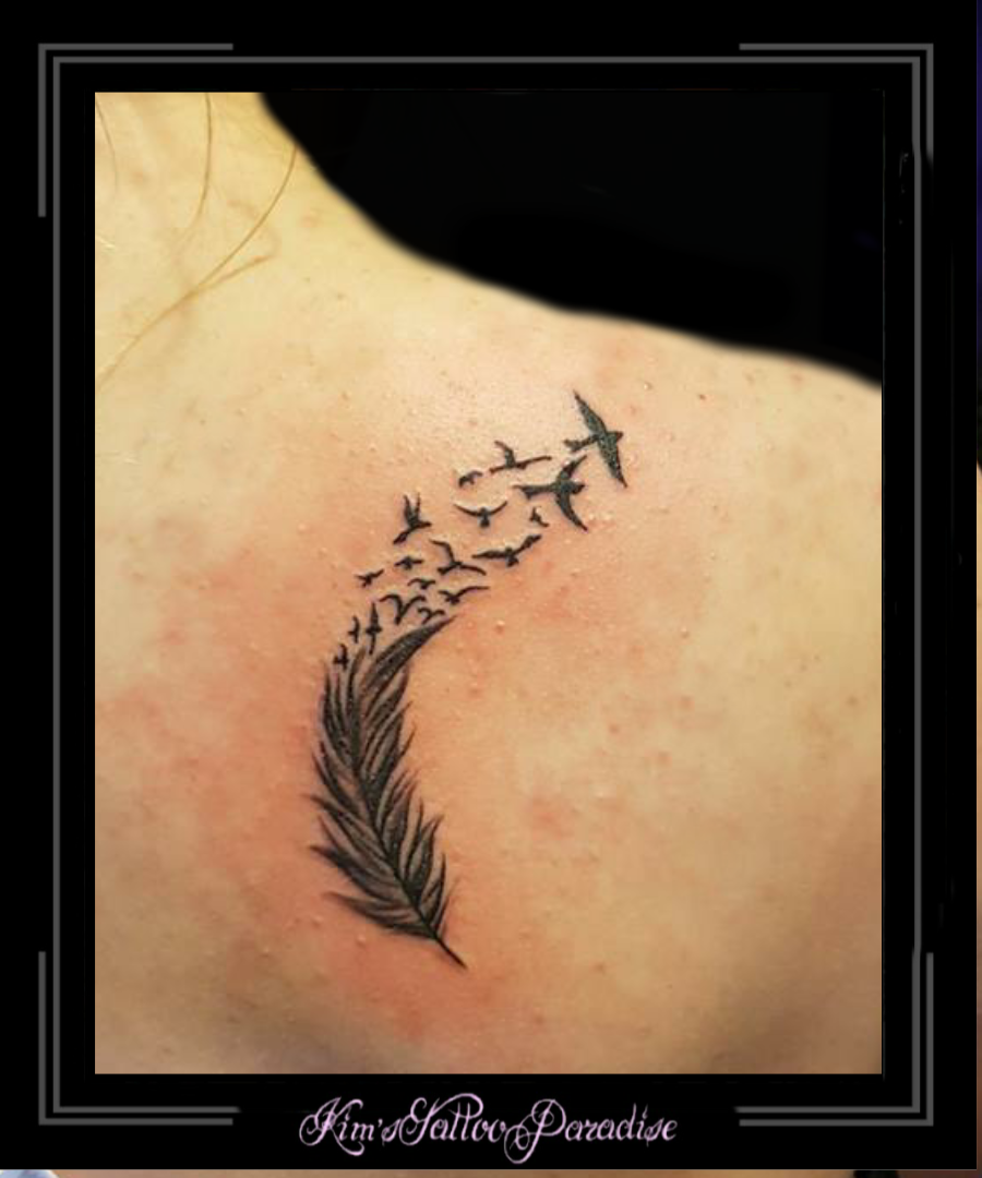 veer vogeltjes schouder 13 oktober 2017 Geef een reactie Tattoo schouder, veer, veren, vogels, vogeltjes